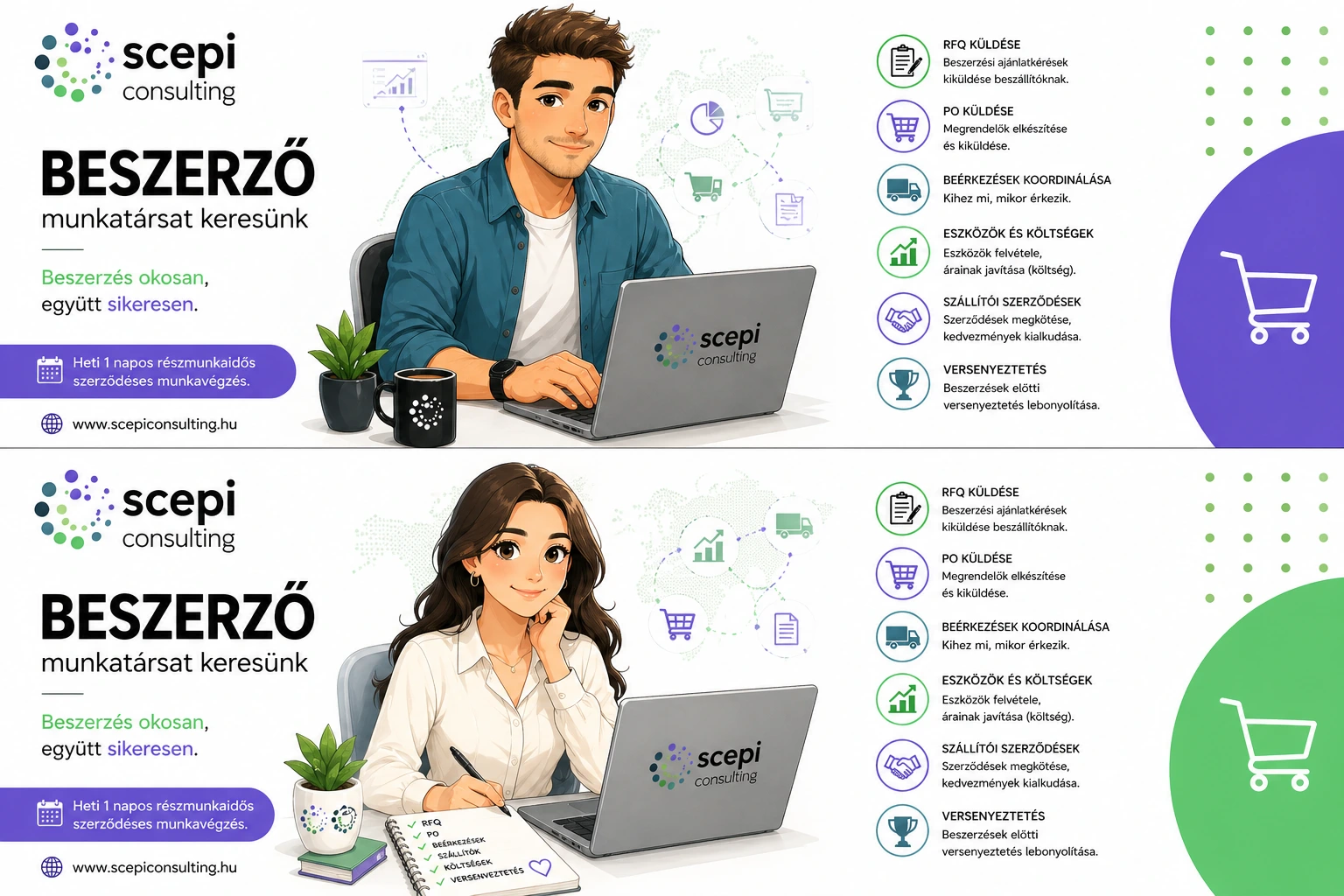 Részmunkaidős kollégát keresünk, aki legalább heti 1 napot tud nekünk dolgozni (több napra elosztva is lehet). A feladatok 100%-ban otthonról végezhetők. Ha ügyes vagy (és mi is), lehet belőle félidős vagy teljes munkaidős szerződés is.